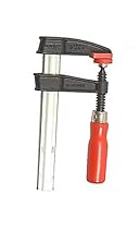 This Tradesman Medium Duty Clamp has a 6" clamping capacity 1" x 1/4" rail size 2-1/2" throat depth and nominal clamping pressure of 600 lbs. The clamp is part of Besseys Tradesman line of bar clamps that features a patented nonslip locking system greater holding power than any other clutch-style clamp corrugated cast jaws high quality galvanized profiled rail coated oversized acme thread large ergonomically shaped wood handle and glue-resistant non-marring plastic caps.